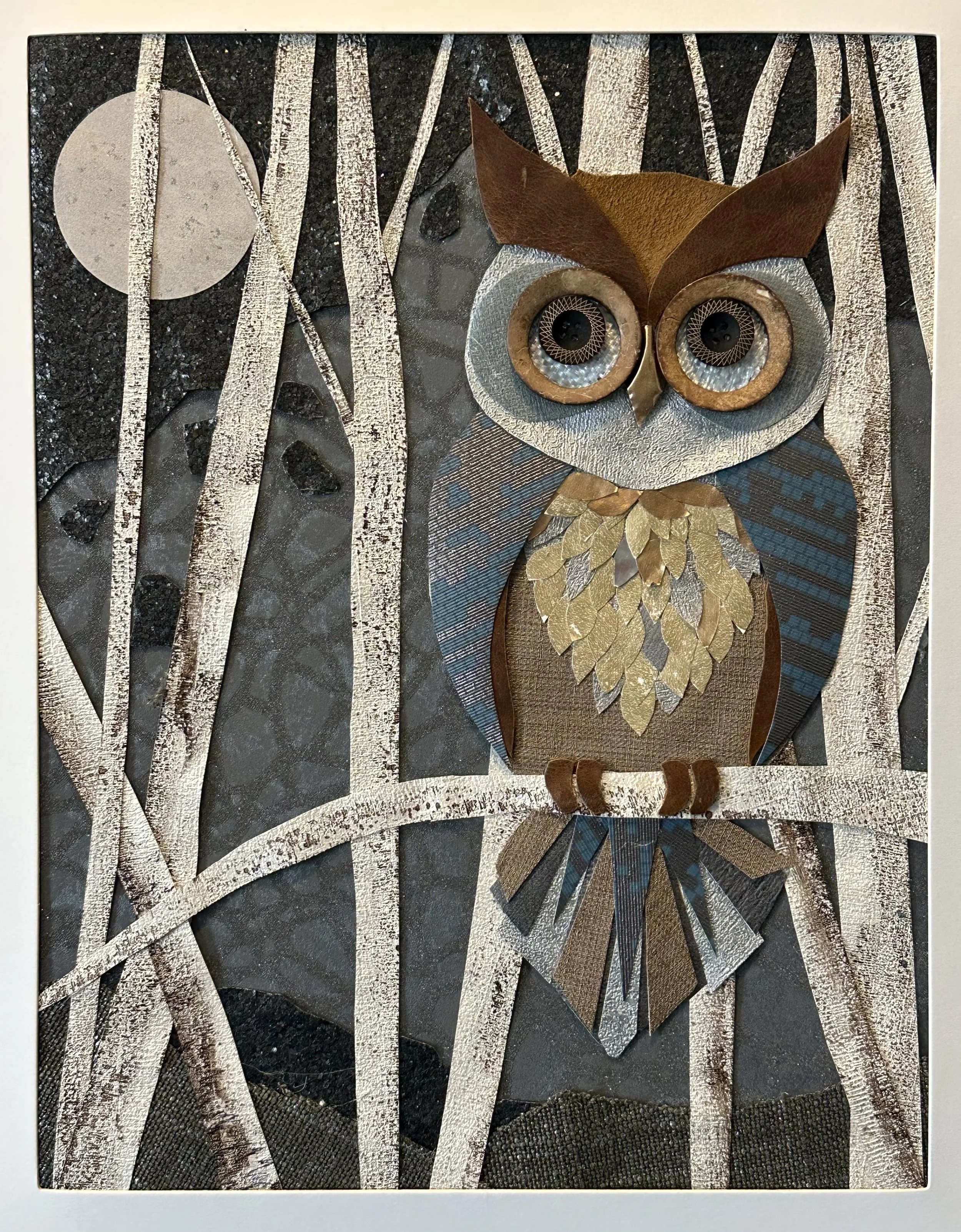 Participants will create a collage of an owl in nature using reclaimed wallpapers, fabrics, buttons, etc. Participants will be encouraged but not required to bring additional materials. The instructor will provide each participant with a work surface made from recycled materials and provide instructions to create for future projects. The instructor will review design basics, including balance, harmony, contrast, and other key concepts. The instructor will also share how collage began, its powerful influence on art, and a fun fact about Picasso and his love for owls.
