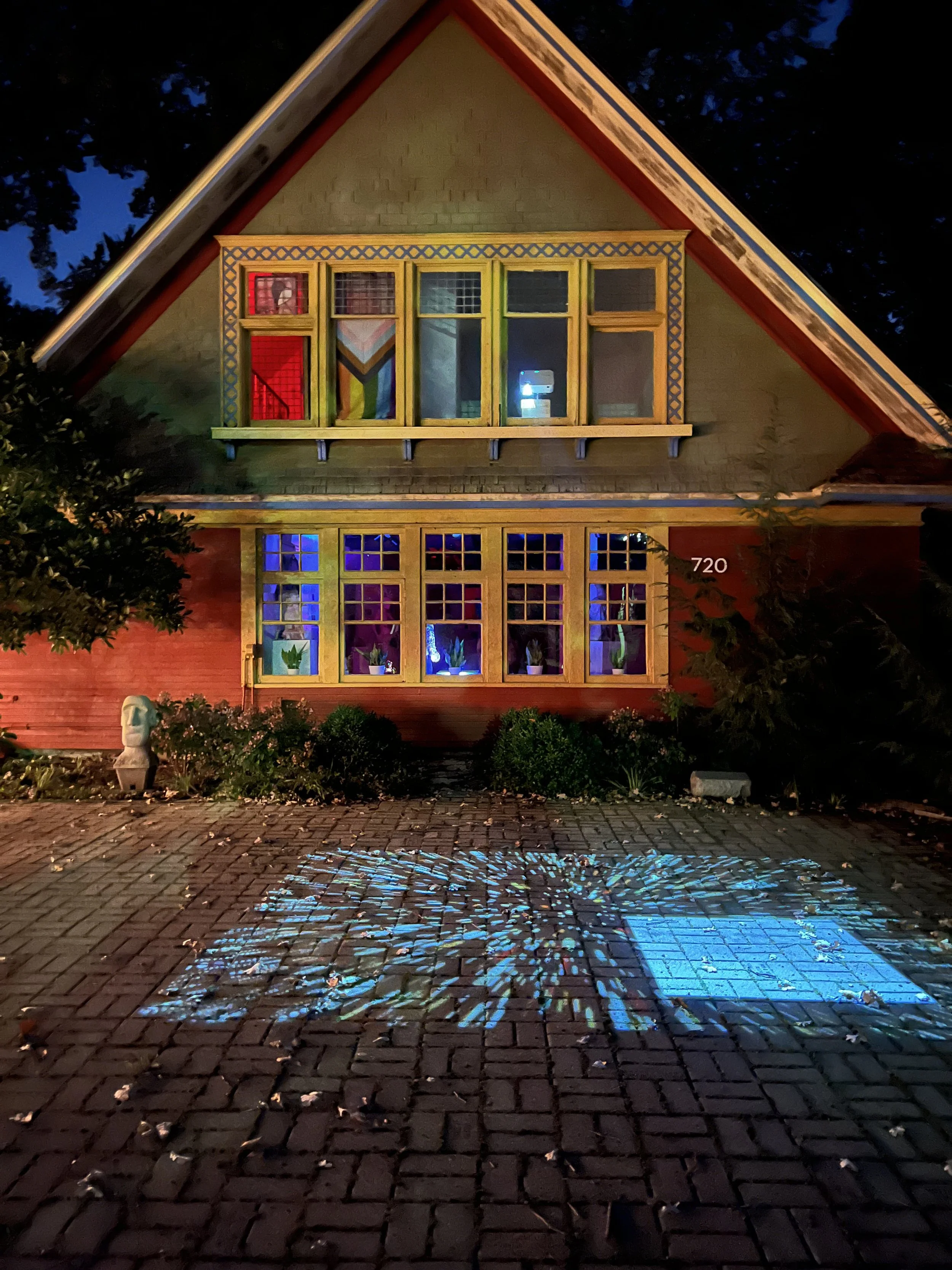 The historic Oak Park Art League hosts three artist installations, one of solid materials in sculptural form Bethany Cordero's The Architecture of Becoming, a video projection, Pia Cruzalegui's Romeria and Margot McMahon’s Flow. Together these works overlap and occupy the garden courtyard offering a contemplative experience to explore and witness changes in the works as the season progresses and collaborates with these works, weathering the physical and changing the meaning over time.