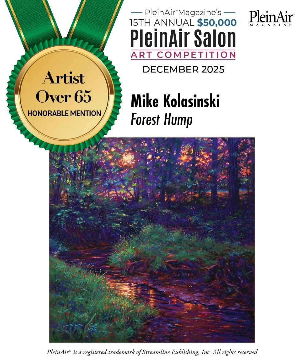 16 x 16 - Dry Pastel received an HONORABLE MENTION in the Artist Over 65 Category from the 15th Annual Plein Air Salon December Art Competition hosted by the Plein Air Magazine Streamline Publishing, Inc.
